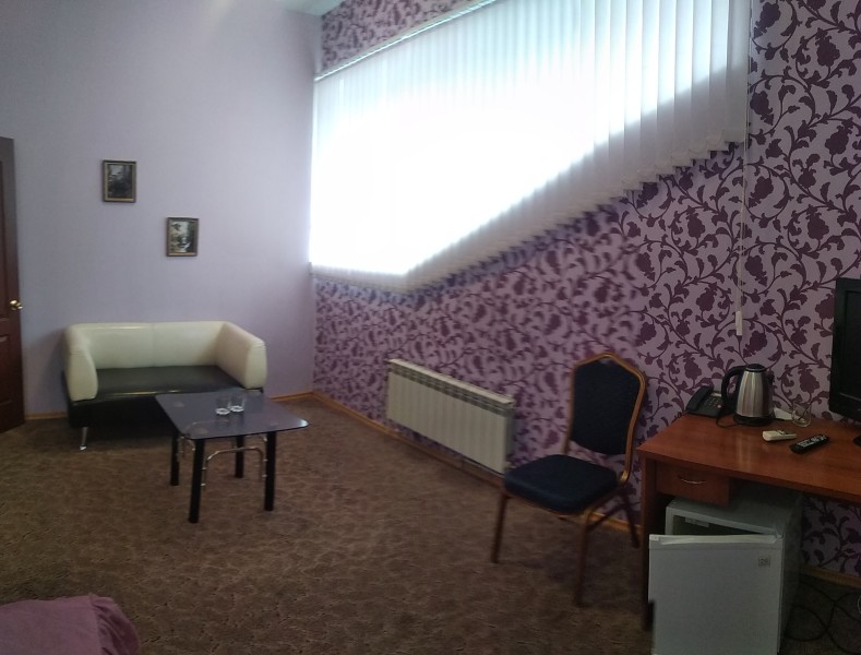 просторный номер с кроватью (120см), зоной отдыха и рабочим столом. Санузел с душевой кабиной. В прихожей большое зеркало и шкаф . Комплектуется номер набором полотенец, тапочками и средствами гигиены. В номере холодильник, телевизор, кондиционер, чайник, чайная посуда. Работает WI-Fi